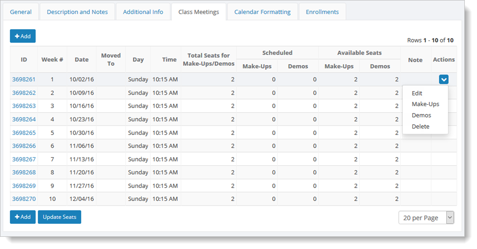 This article will discuss how to add, edit and delete demos from Manage > Classes > Classes.